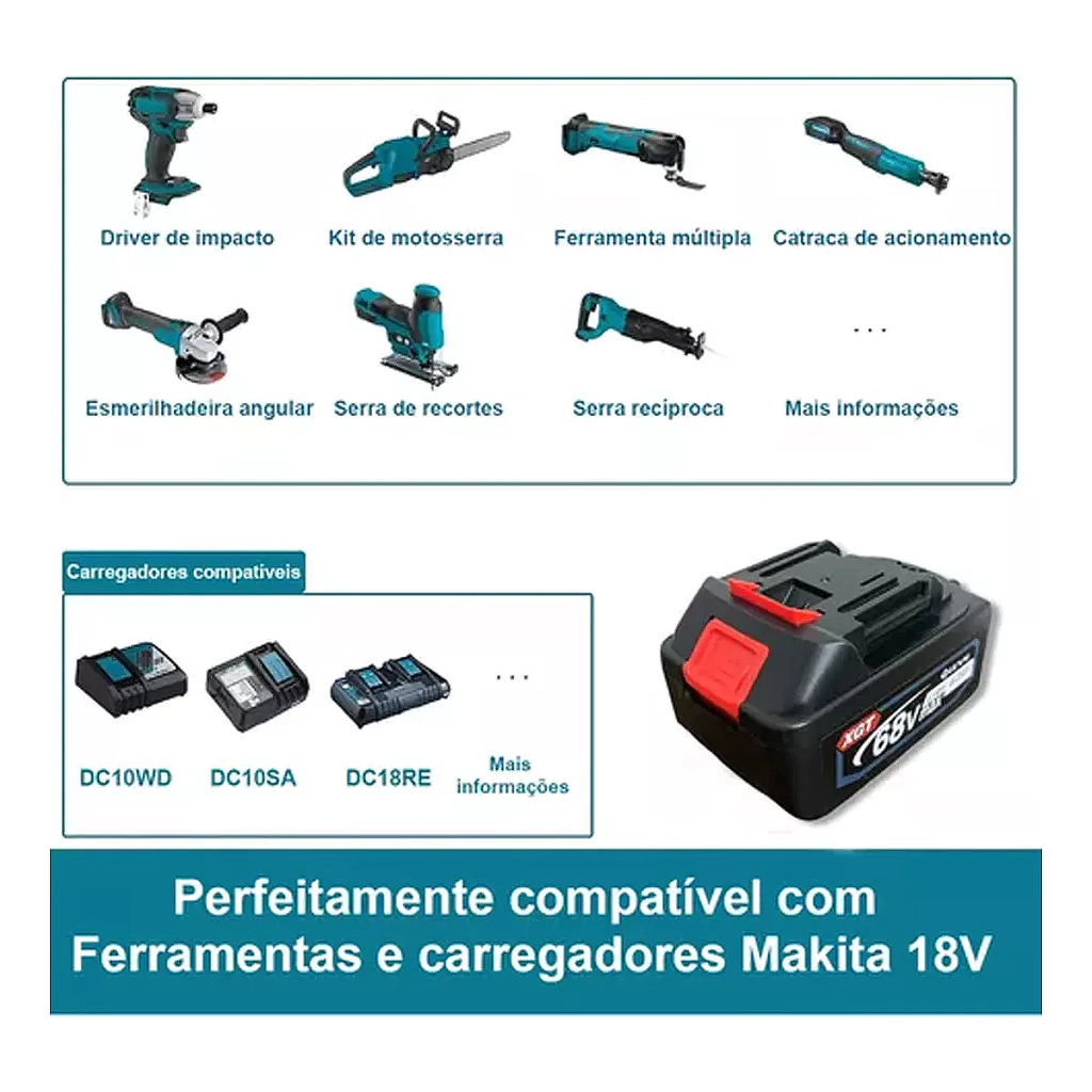 Esta bateria é compatível com qualquer ferramenta Makita que tenha a mesma entrada, tornando-a um acessório versátil e indispensável para os profissionais e entusiastas da bricolagem.