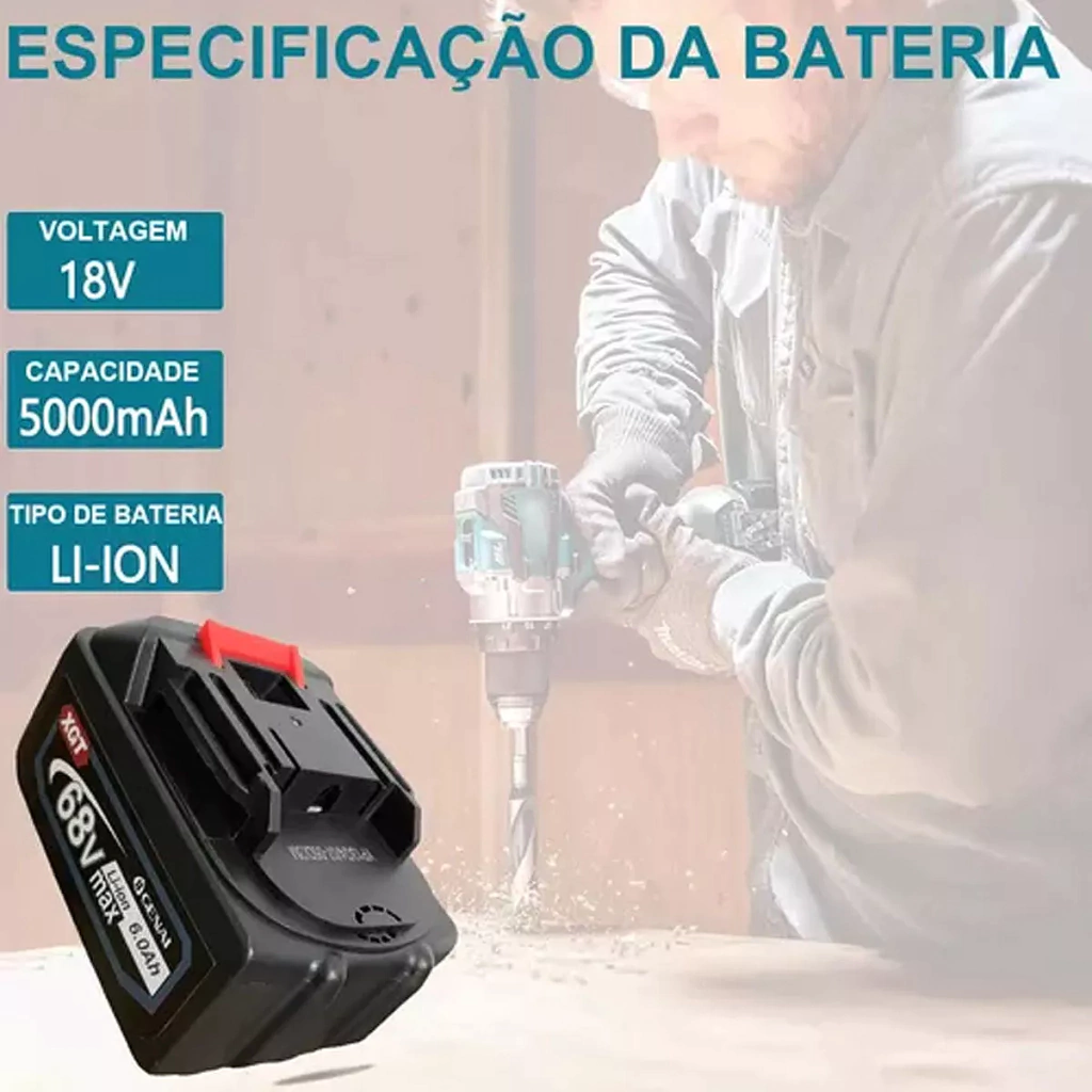 Aumente o desempenho das suas ferramentas elétricas com a nossa Bateria Li-ion 68V 1500mAh. Ideal para quem utiliza furadeiras elétricas, chaves de impacto elétricas, esmerilhadeiras elétricas, serras elétricas e pistolas de pintura elétricas, esta bateria é a escolha perfeita para garantir potência e eficiência.