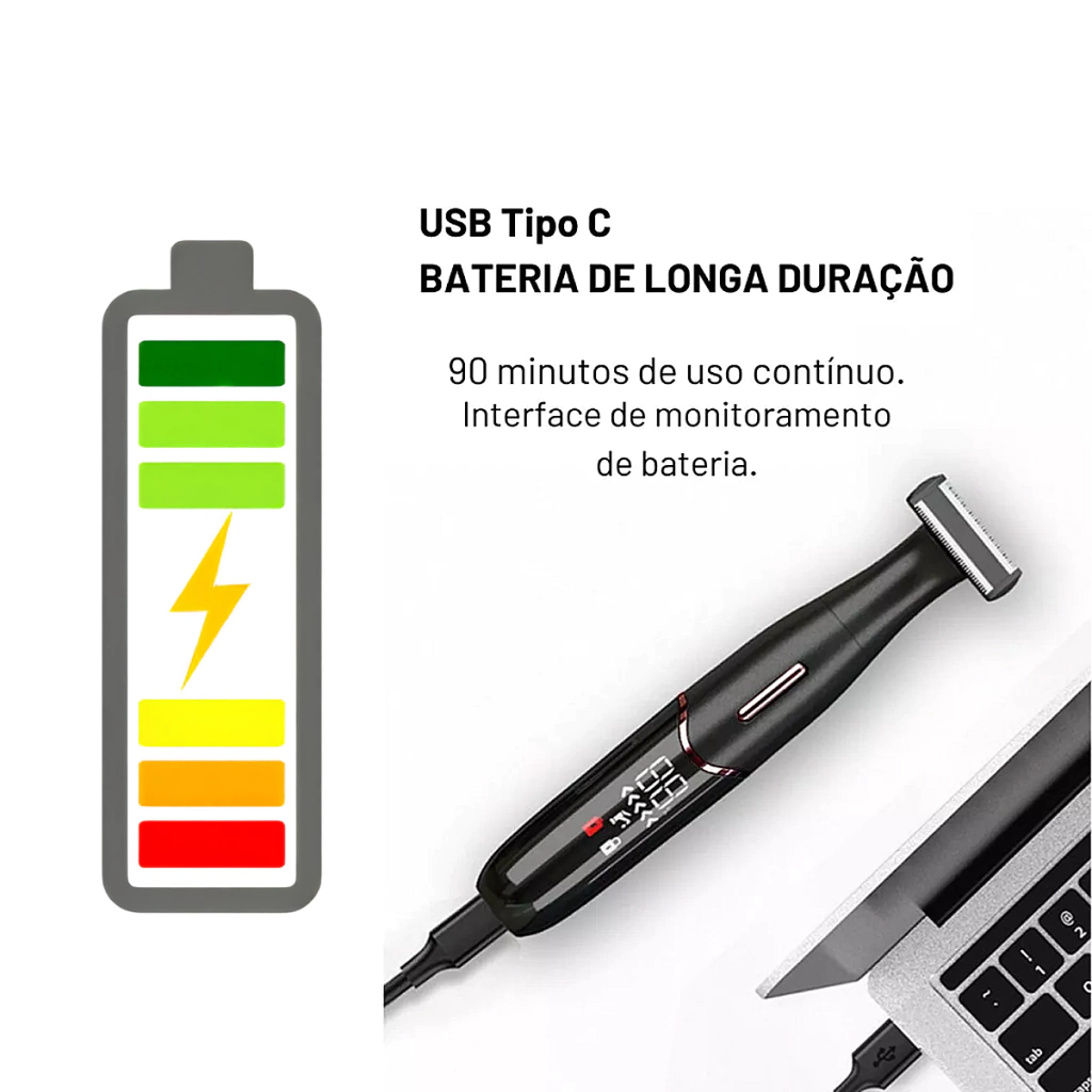 Este barbeador não é apenas uma ferramenta, mas um verdadeiro aliado no cuidado da sua aparência. Com design moderno e portátil, é ideal para homens que estão sempre em movimento, seja em casa, na academia ou durante viagens.
